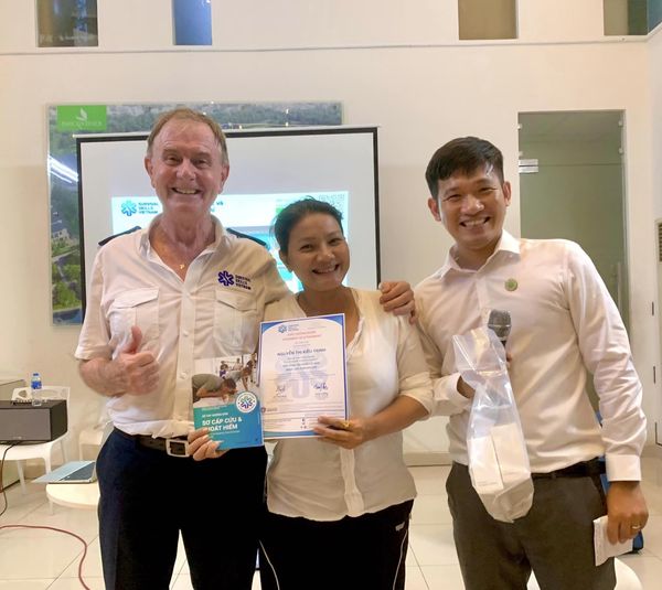 Lần nữa 2 mẹ con rất trân trọng tri ơn Thầy Tony Coffey đến từ Úc và bạn Hồ Thái Bình cùng em Nghĩa Phạm đã tổ chức những lớp học sơ cấp cứu để chia sẻ cùng moi người.