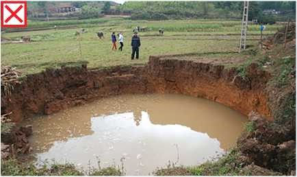 Hố chứa nước không có biển cảnh báo, không có rào chắn, không lấp sau khi sử dụng