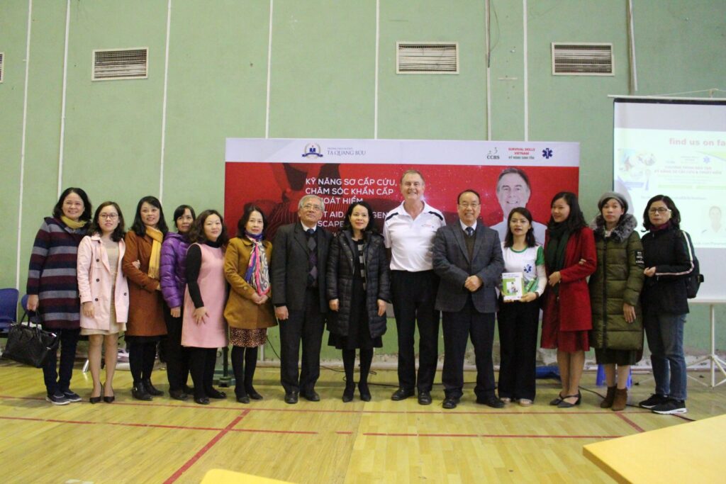 Attending the training session, there were Mr. Hoang Xuan Lan – Director of External Relations of BK Holdings Group, representatives of the School Board of Directors, and Mr. Nguyen Van Tho – Vice Principal of Ta Quang Buu Middle School and High School, Mr. Nguyen Canh Luong – Chairman of the School’s Science and Education Council, Ms. Nguyen Bich Huyen – UV of the school’s Board of Directors, and more than 800 students, staff and teachers of the school. The representative of SSVN was Mr. Tony Coffey – Australia’s leading first aid expert; Ms. Trang Jena Nguyen – Program Coordinator, Co-Founder of SSVN.