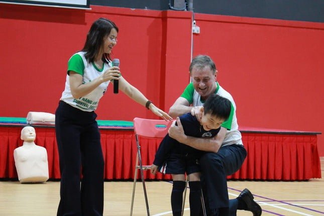 At the training session, expert Tony Coffey pointed out some common mistakes people make and gave first aid instructions to students and teachers of the North American International School – SNA (Him Lam Area – Nam Sai District). Saigon, HCMC). Accordingly, SNA students have been practicing skills to effectively deal with injuries that are common among schoolchildren such as fractures; Sprain, dislocation, drowning.