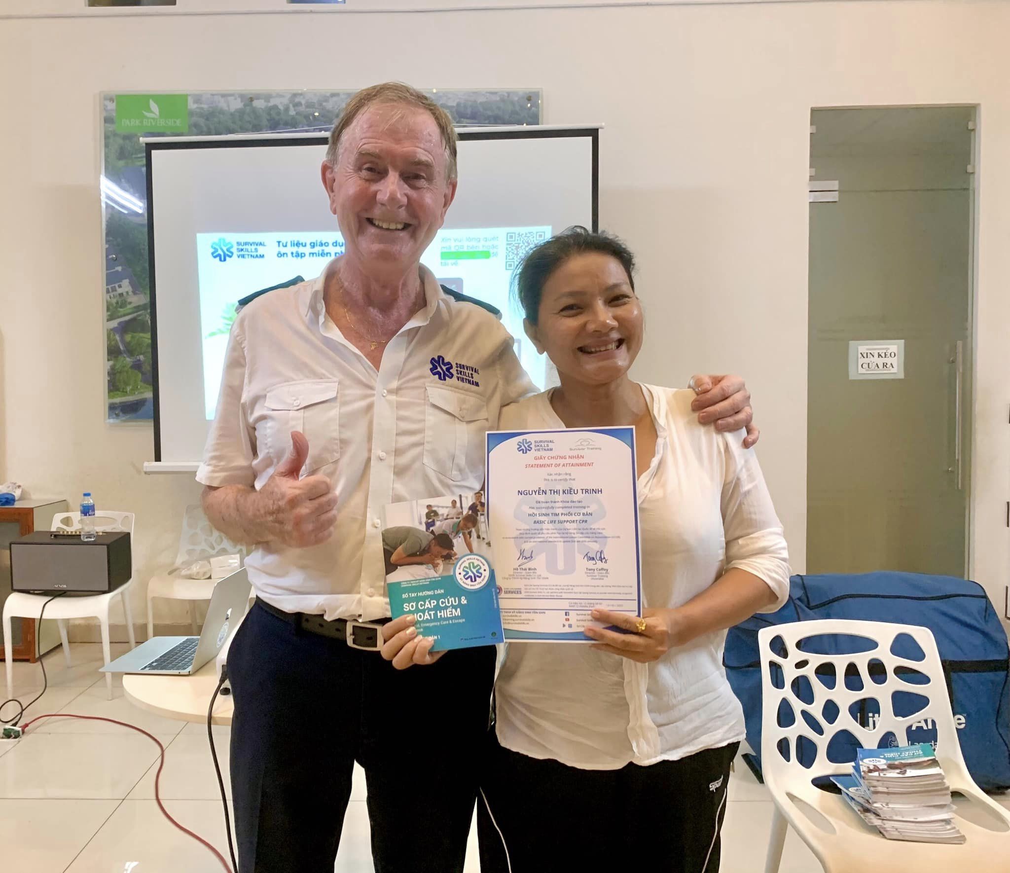 But why is he in Vietnam? That was the story of 2014 when he went to Vietnam to travel. Accidentally, he knew that a baby had suddenly died due to airway obstruction but did not receive first aid in time. When the accident happened, the child care center staff called the family to come to the baby’s emergency, but just a few minutes late, the baby’s life could not be saved. Tony Coffey cried when he heard that story, he decided to bring his rescue experience to help the Vietnamese.