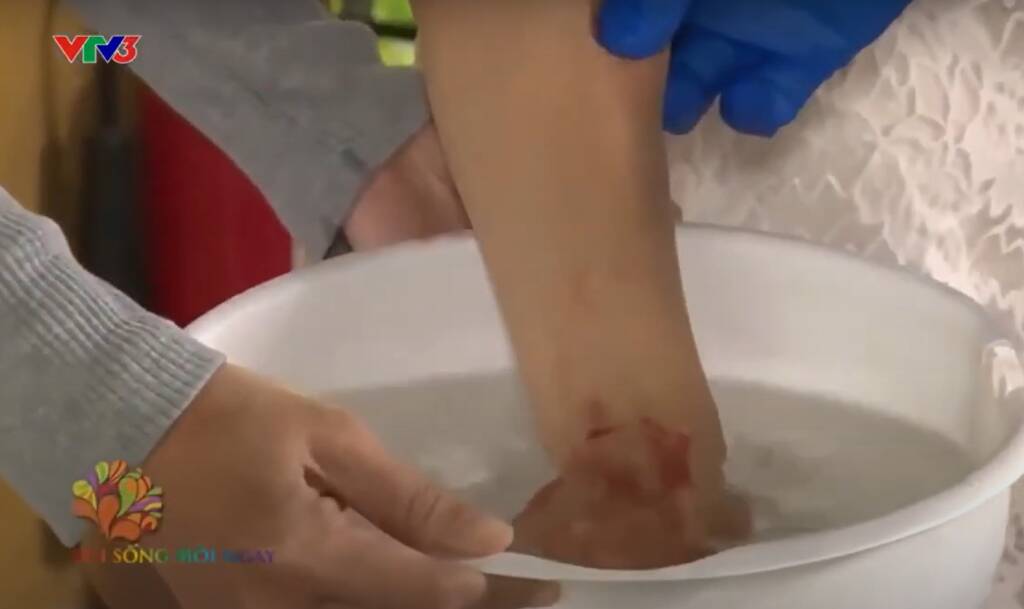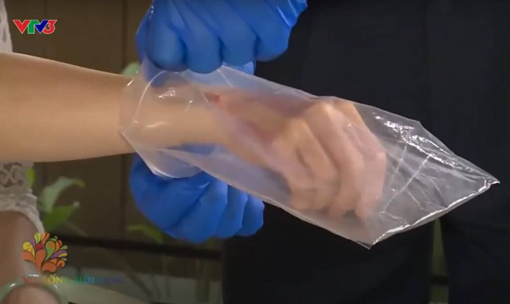 For a serious burn injury like this, after first aid with water, we should take the victim to the hospital. We need to cover the victim’s burn wound to prevent infection with materials that do not stick to the skin. For example, food wrap, clean plastic bags, etc. Remember to cover lightly, not wrap tightly as in the case of stopping bleeding. In case of a hand burn like this, after first aid and cooling with water, we can easily put the hand in a plastic bag and take it to the hospital immediately afterward.